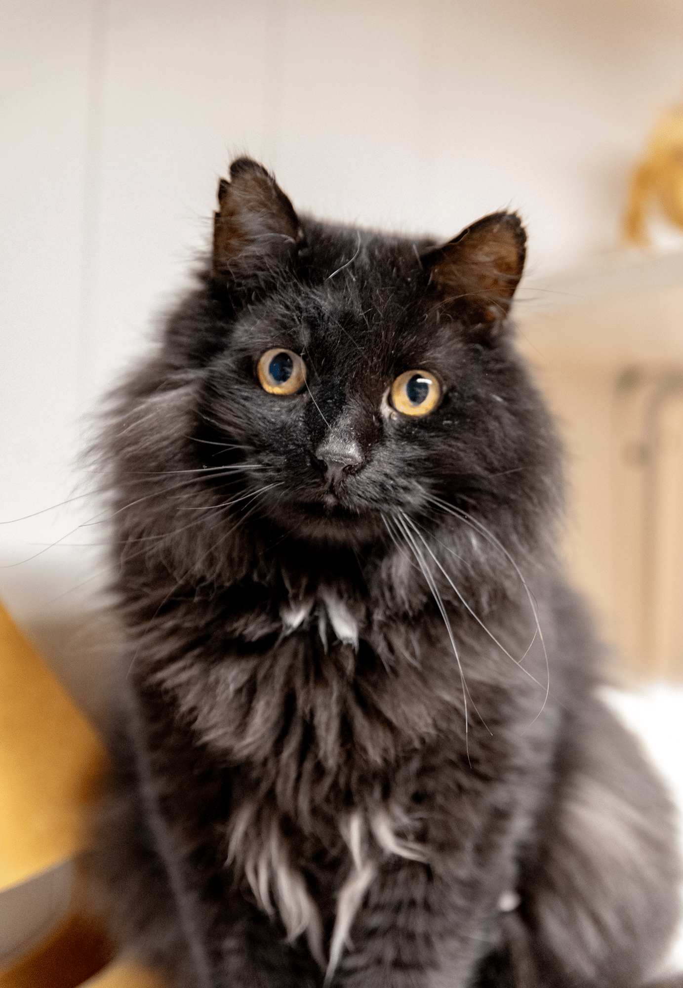 Hils på Antonie! Antonie kom inn til oss i januar 2025, og er antatt født 01.01.2022. Hun er en vakker hunnkatt med lang, sort pels og gule øyne. Antonie er…