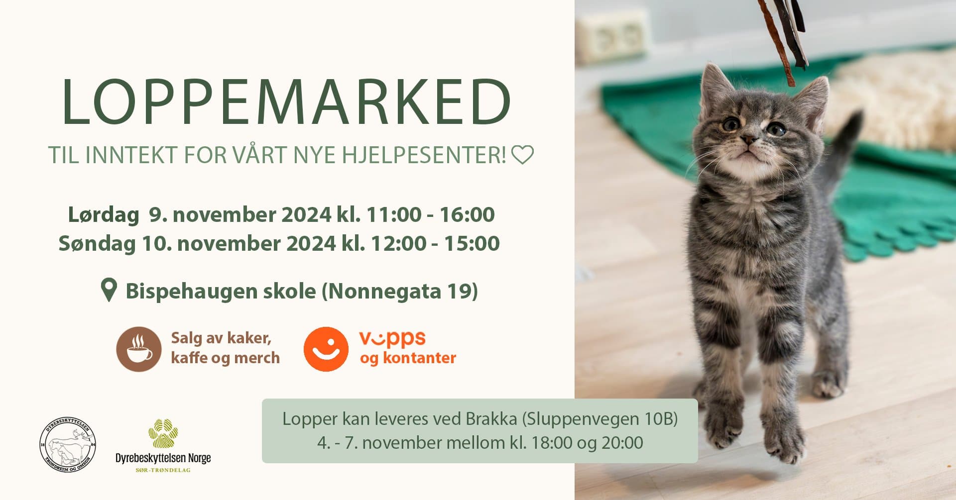 Lørdag 9. og søndag 10. november er det igjen duket for loppemarked, til inntekt for vårt nye hjelpesenter for hjemløse dyr! Vi trenger masse gode lopper, så dette er…