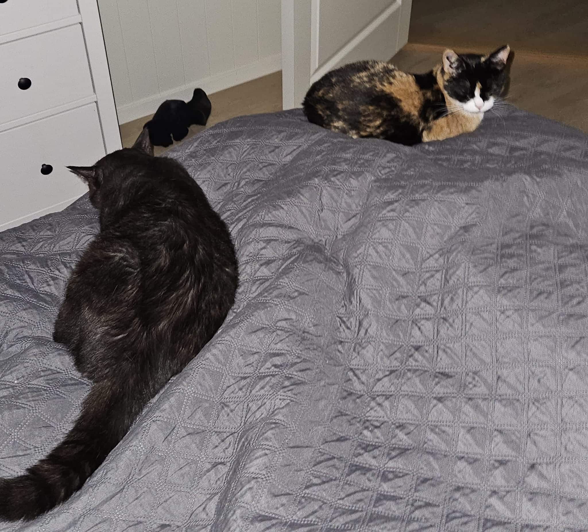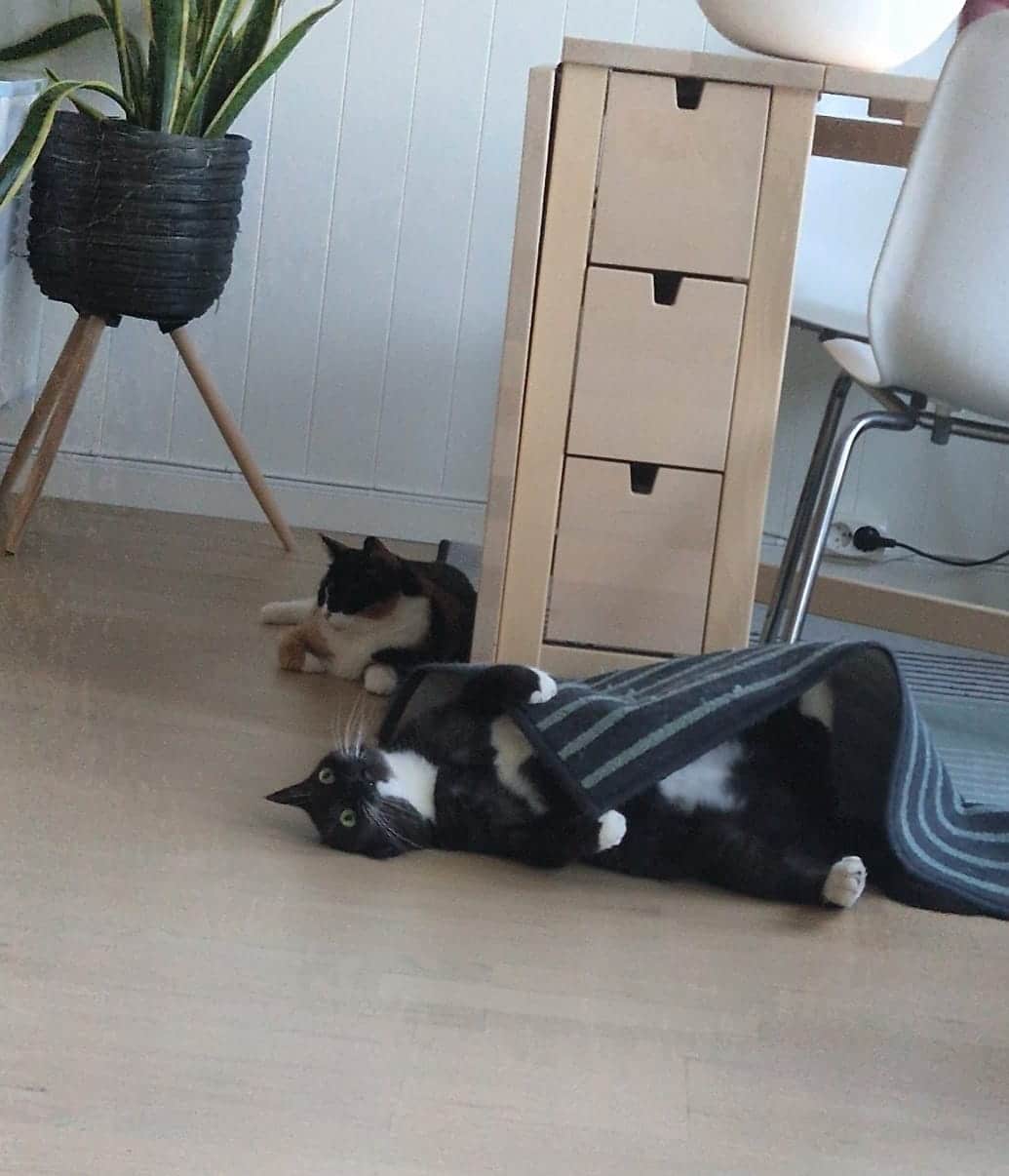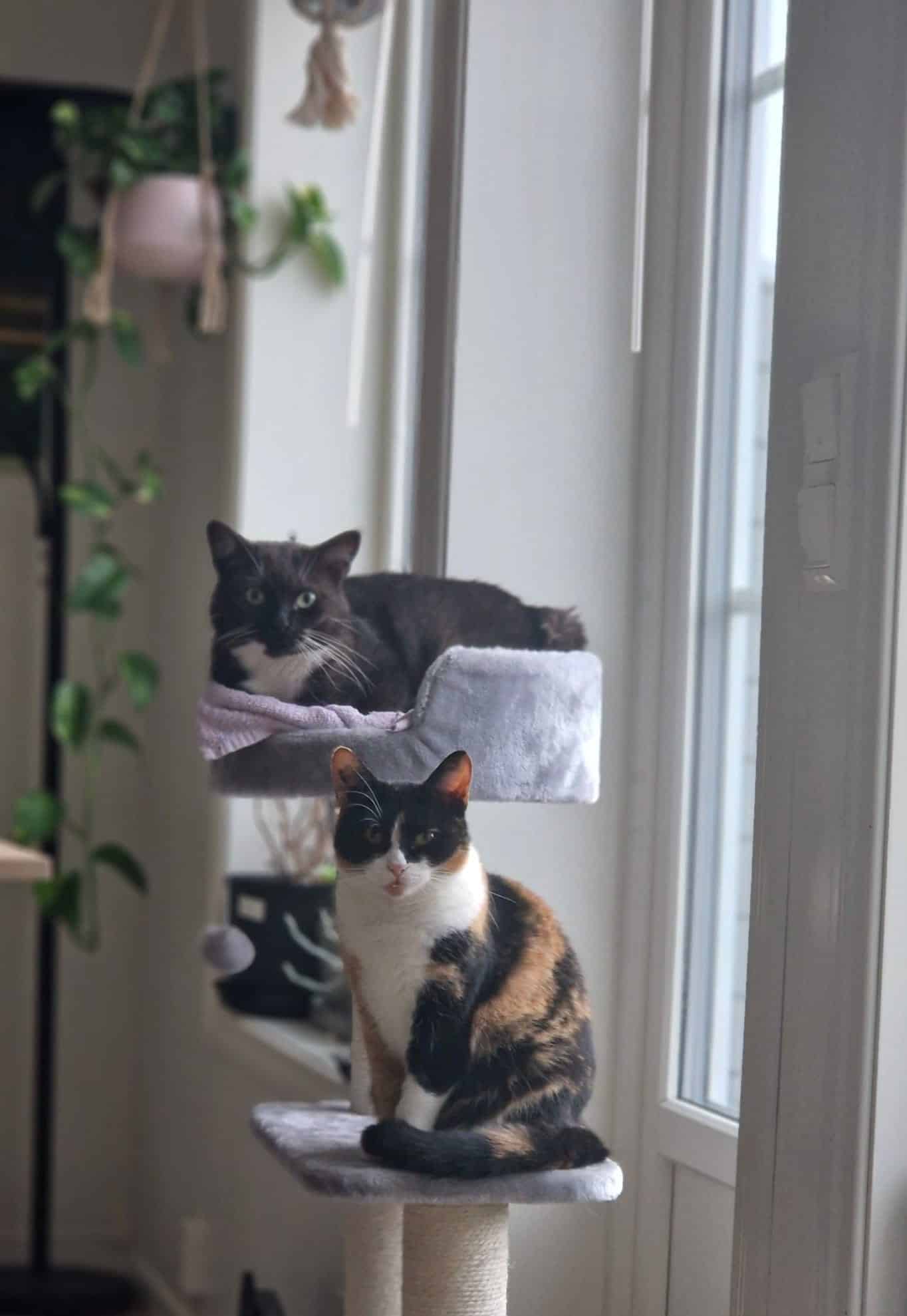 Disse to bor sammen i fosterhjem, og vi tenker at de hadde trivdes godt med å flytte til sitt for-alltid-hjem sammen. Stubben har kort svart og hvit pels, og vi antar at han er ca. 11 år gammel. Han fikk navnet sitt fordi vi tok ham inn fra Stubban i Trondheim. Ida har kort skilpaddemønstret pels i brun, oransje, svart og hvitt. Hun kom til oss fra en koloni i 2022, og bar preg av dette, men har siden fått mye kos og sosialisering i fosterhjem. Hun er nå ca. 2 år gammel.
