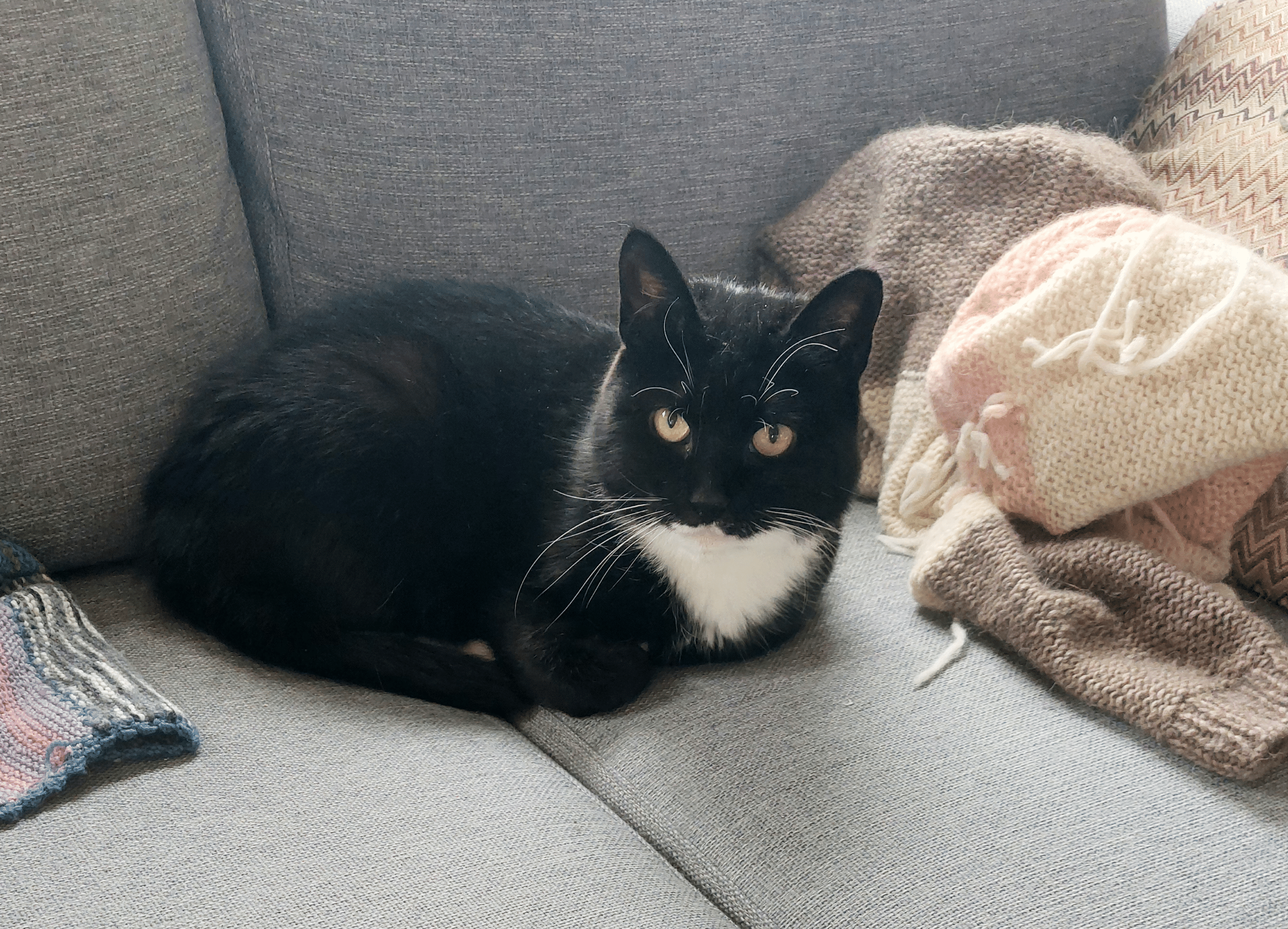Og til slutt så kan jeg også legge til at jeg ikke liker å være alene så mye. Derfor er det så fint at dette fosterhjemmet har en annen katt.»